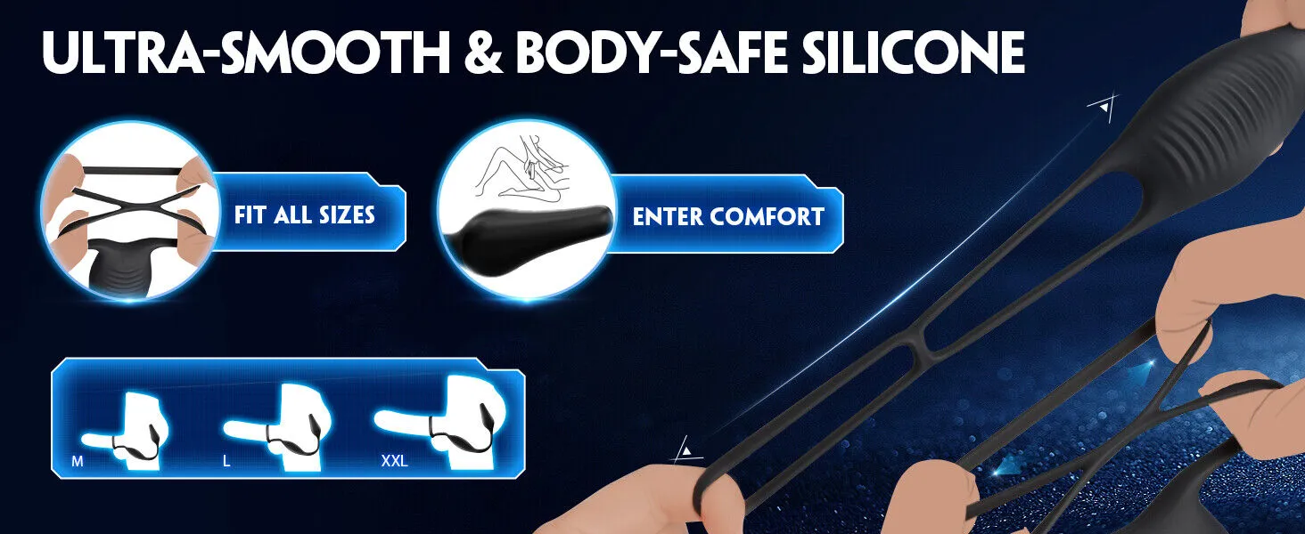 Stretchy Silicone & Whisper Quiet🔇- Unlike other sex toys on the market which are hard and uncomfortable. Our anal vibrator has been updated to provide an ultra-soft and stretchy texture, the dual penis rings can fit most girths and are soft enough to hold tight even for extra-large males size comfortably. The anal trainer plugs with a smooth tapered tip for easy insertion and comfortable wear.Our anal dildo toy achieves quiet ≤40dB, enjoy the outside fun without worrying about being overheard.🍑