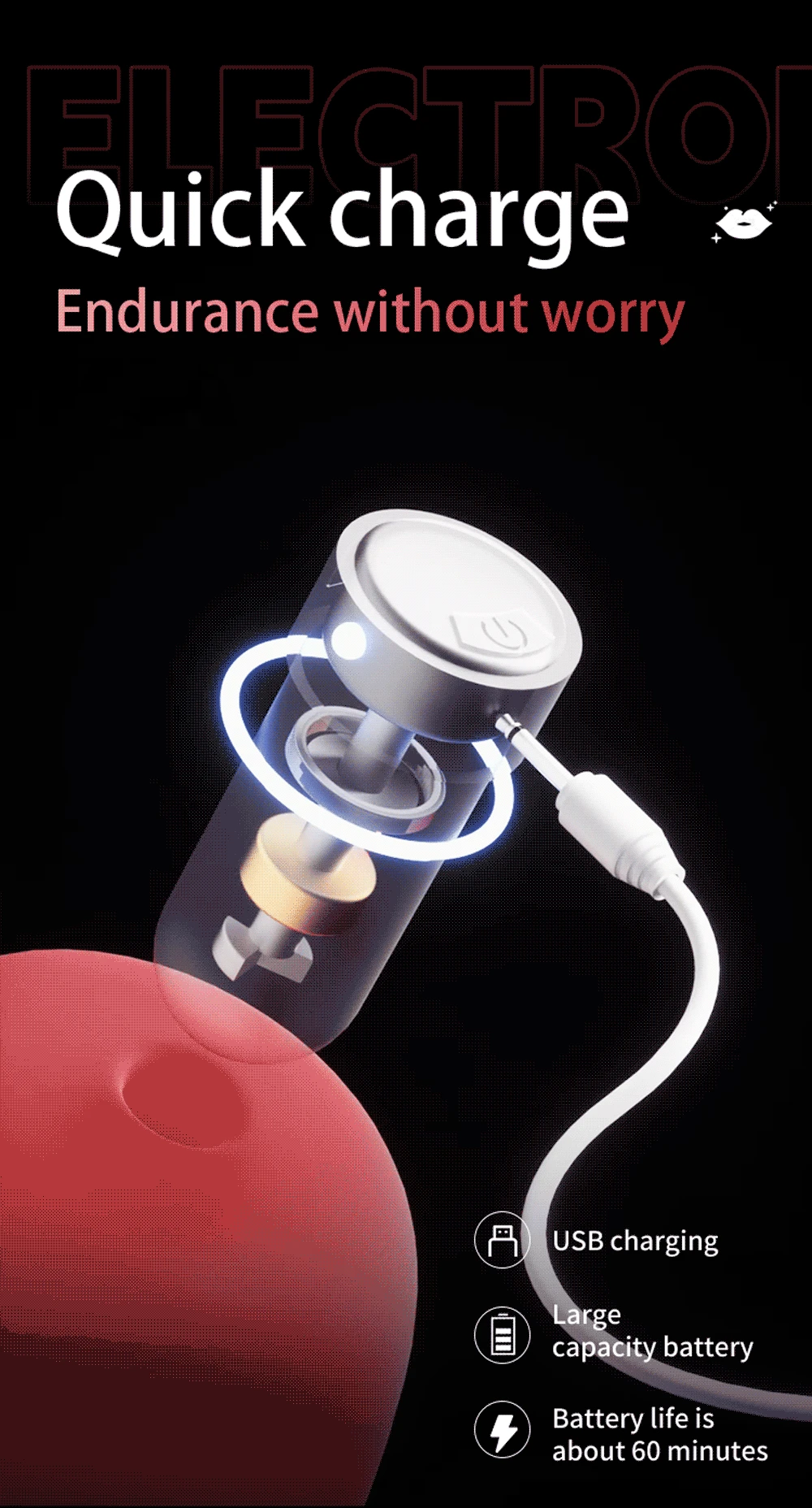Flaming Lips Jolie uses USB magnetic charging, which is safe and fast. It is palm-sized and can be hidden in the corner of a bag or suitcase, making it convenient for you to use in various scenarios!